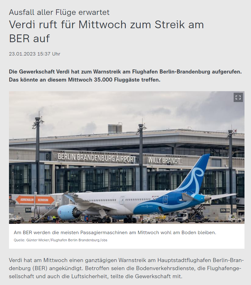 So beschrieb der BDLS in seiner letzten Pressemitteilung den gemeinsamen Streik der drei Tätigkeitsbereiche Bodenverkehrsdienste, Flughafengesellschaft und Luftsicherheit am Berliner Flughafen BER in der vergangenen Woche.